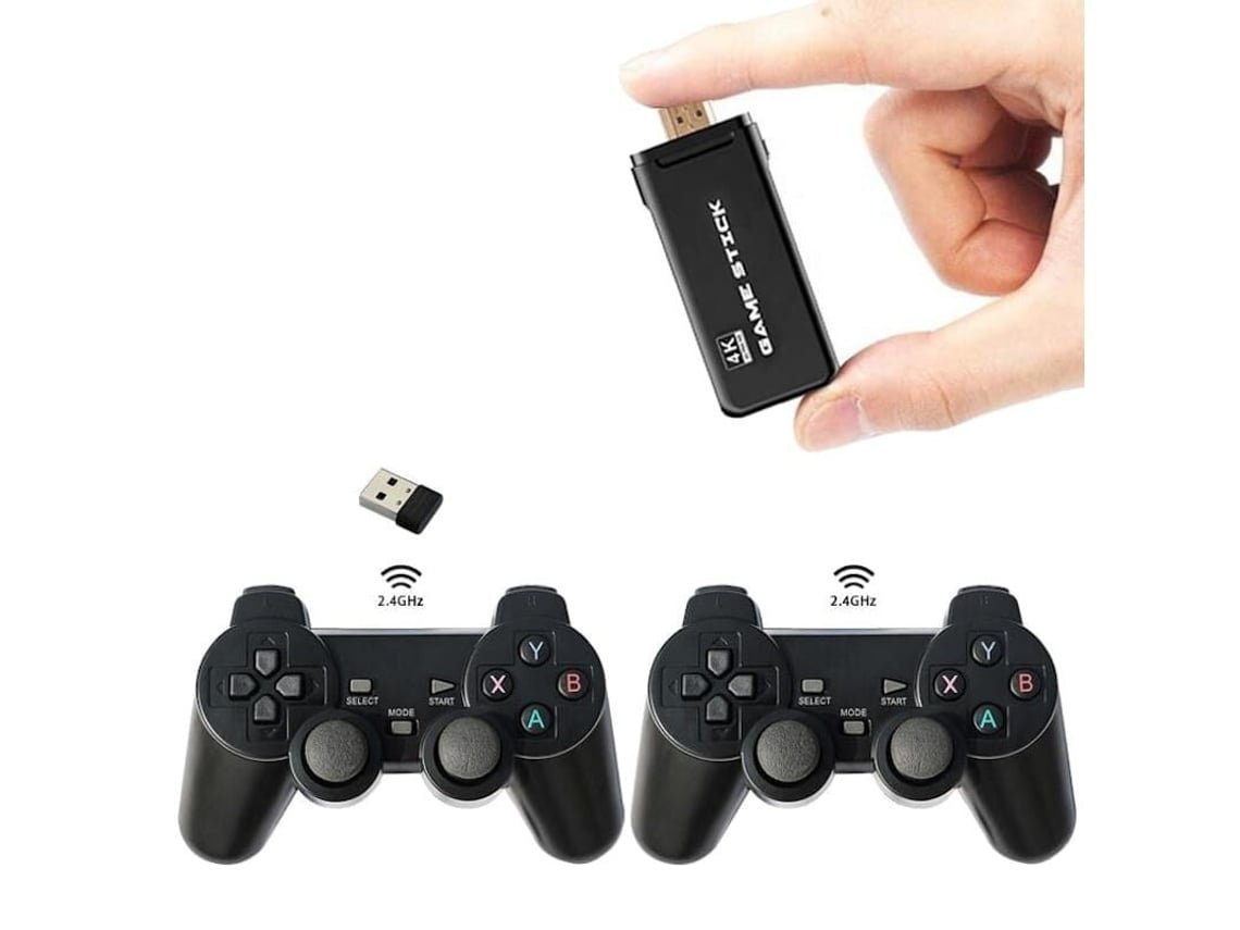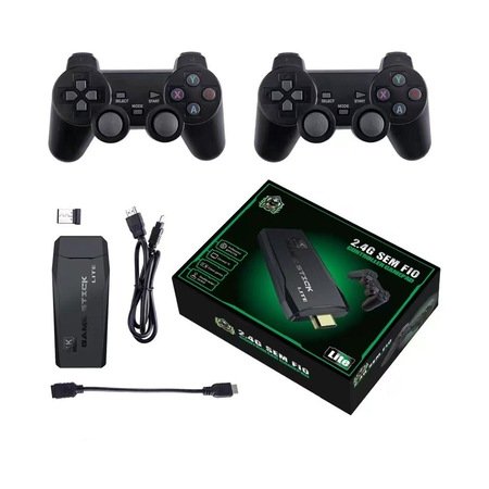 Controlador de videogame retrô clássico sem fio punho duplo 2.4g sem fio hdmi hd mini console de jogos doméstico. Divirta-se com toda a nostalgia de mais de 1000 jogos clássicos de consoles retro com o game stick lite que oferece aos amantes de consoles, dois controles para jogar sem fio junto de seus amigos, uma biblioteca ampla de games de época, com fácil uso, basta plugar, configurar rapidamente e está pronto para reviver boas lembranças com horas de diversão e qualidade de imagem de até 4k.